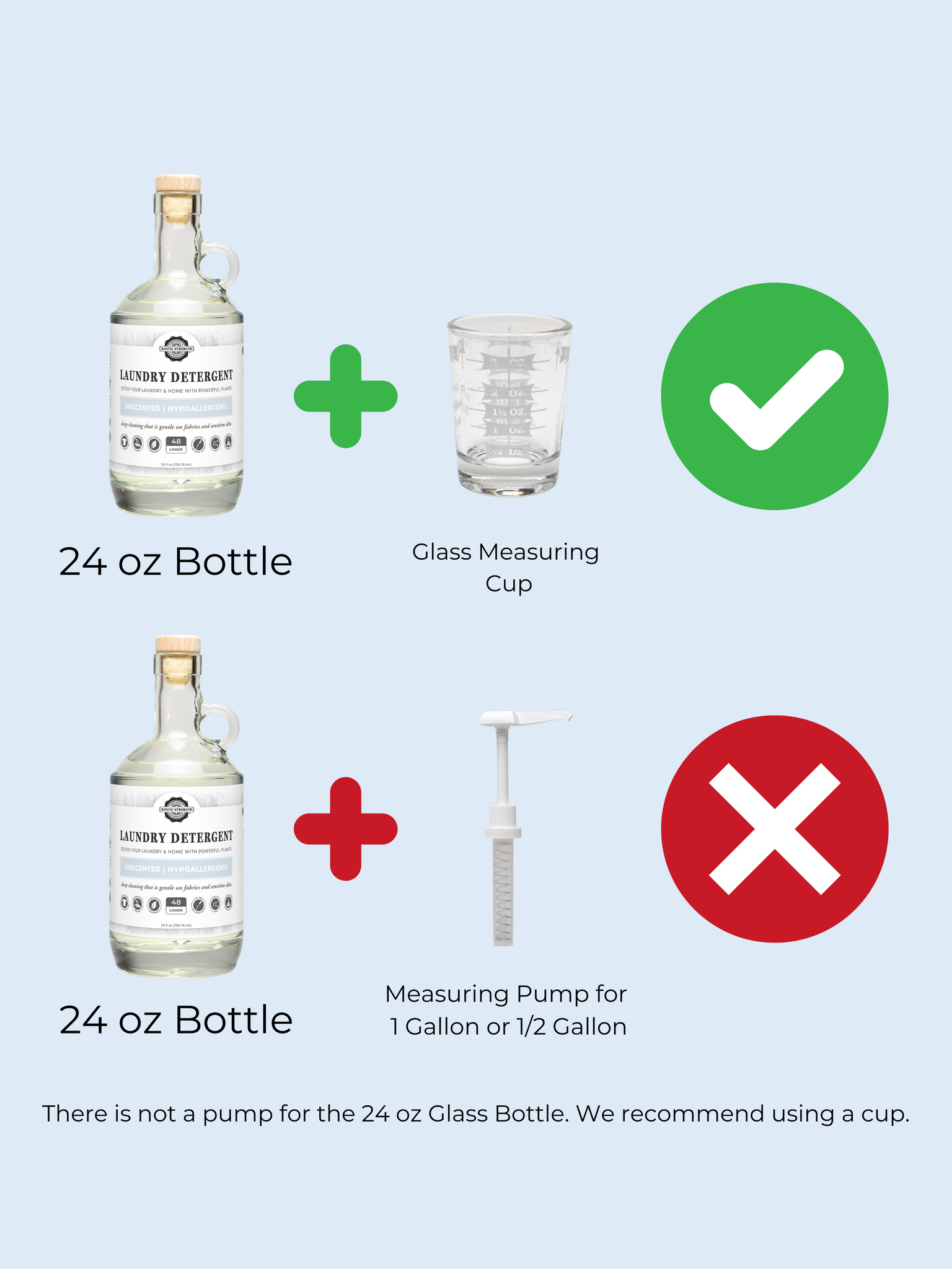 This pump fits our 1 Gallon (128 oz) Jugs only. These pumps dispense a full 1oz when fully charged. The exact amount for a medium load of laundry.