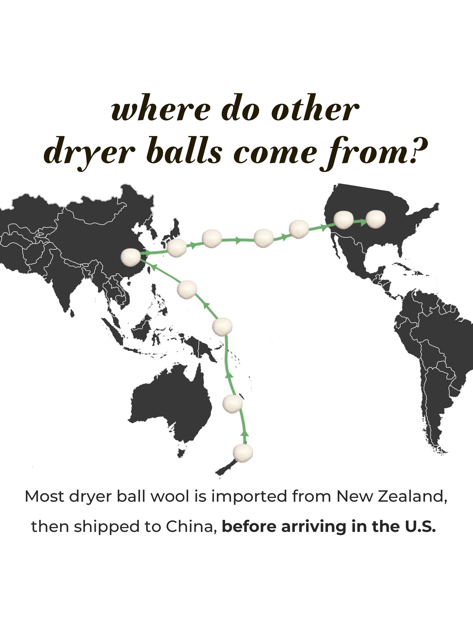 A toxin-free, eco-friendly, reusable alternative to dryer sheets | Many dryer sheets are made with chemicals known to cause skin irritation, respiratory damage, developmental harm, endocrine disruption, reproductive issues, and cancer. That's why we feel it's so important to provide our Wool Dryer Balls, which are free of these toxicities.