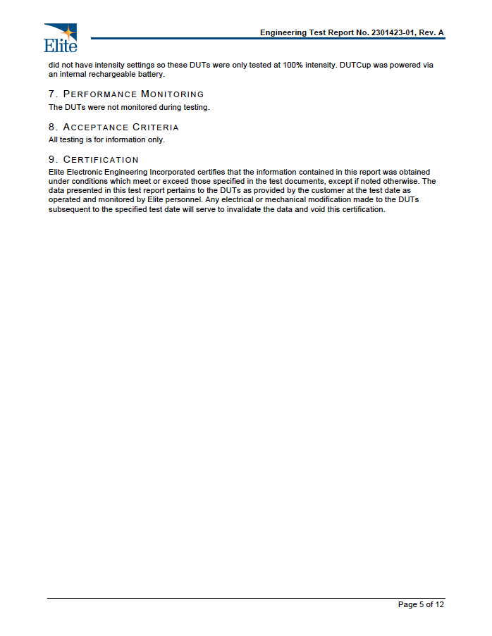- Light flicker: 1.2% modulation, 60Hz