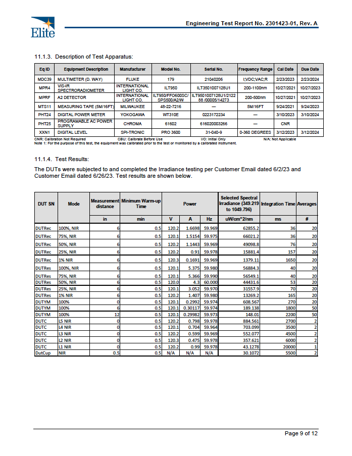 - Irradiance (measured at 0"):