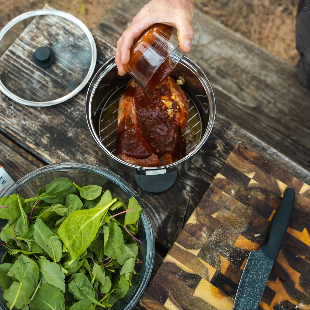 The RockPot is an easy-to-use portable cooker that requires no propane or electricity that can cook raw food. The RockTablet is our stone-based heating source for RockPot and can be heated over an open fire or over a stovetop (gas, electric, glass or butane) and can be reheated over thousands of times.