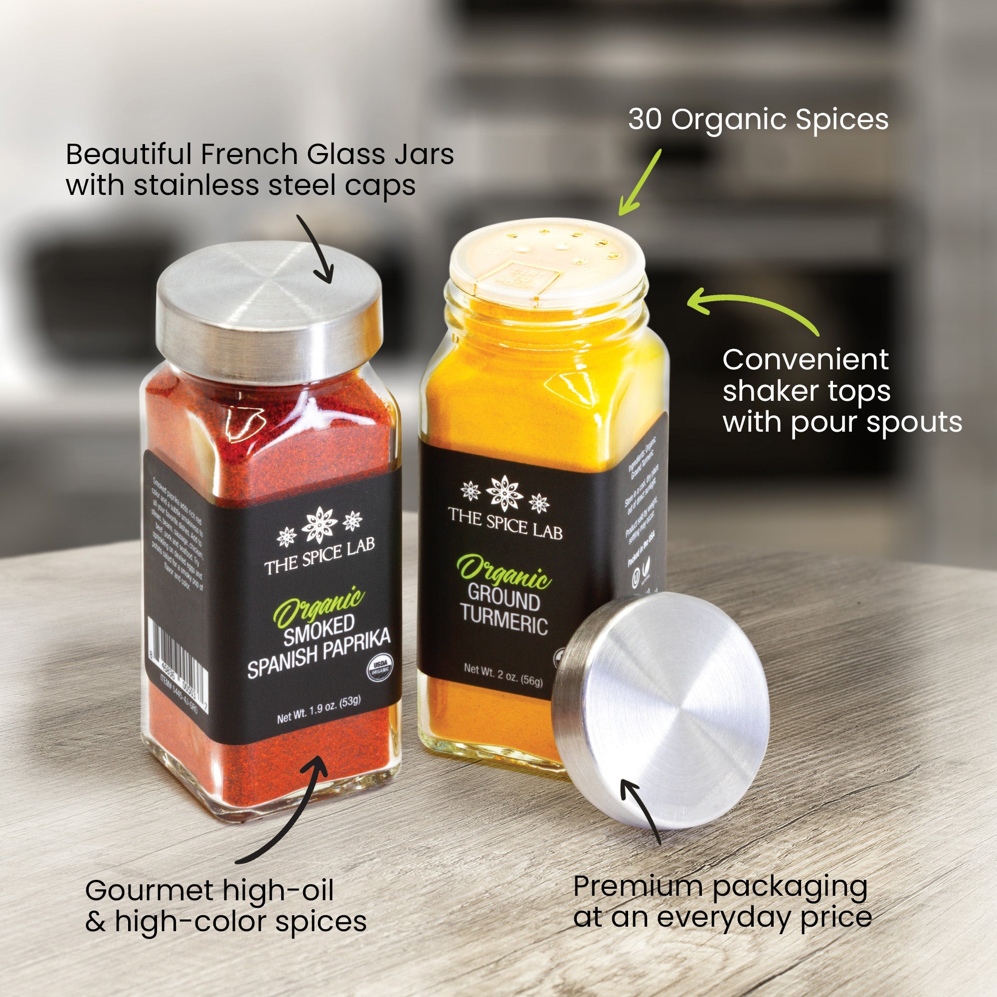 UPGRADE TO PREMIUM ORGANICS: Toss out your dusty, basic spices and upgrade to The Spice Lab Organic Line. These gourmet high-oil, high color organics are compatible with our non-organic French jars, which means more options for you and clean lines for your organized pantry and kitchen. We make it easy to upgrade by offering premium organic herbs and spices at an everyday, non-organic price.