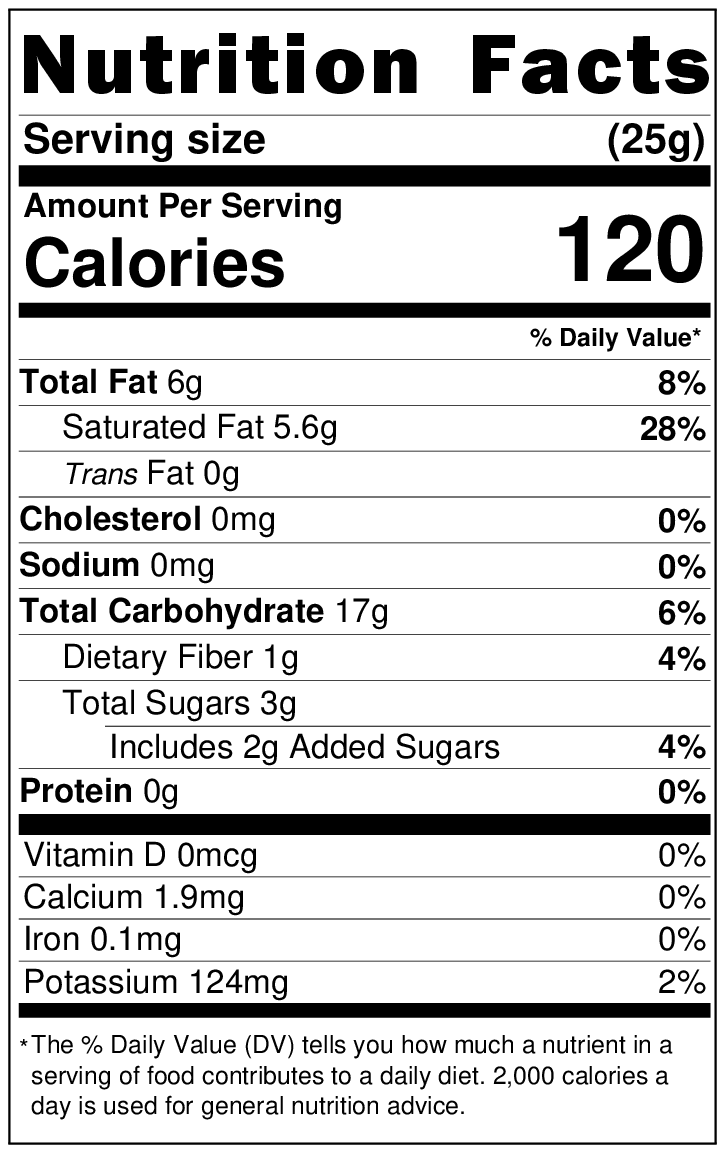 Allergen Statement: Product packed in a facility that also handles nuts, peanuts, soy, sesame, and wheat. 8 oz and 2 lb sizes only.