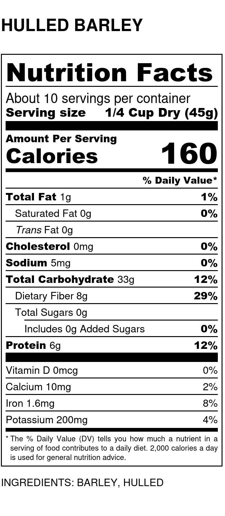 Discover the hearty goodness of our organic hulled barley, the least processed form retaining all natural nutrients. Rich in dietary fiber, protein, and essential minerals like iron and magnesium, this versatile grain adds nutty flavor and chewy texture to soups, stews, and salads. Transform your meals with this nutritious ancient grain today!