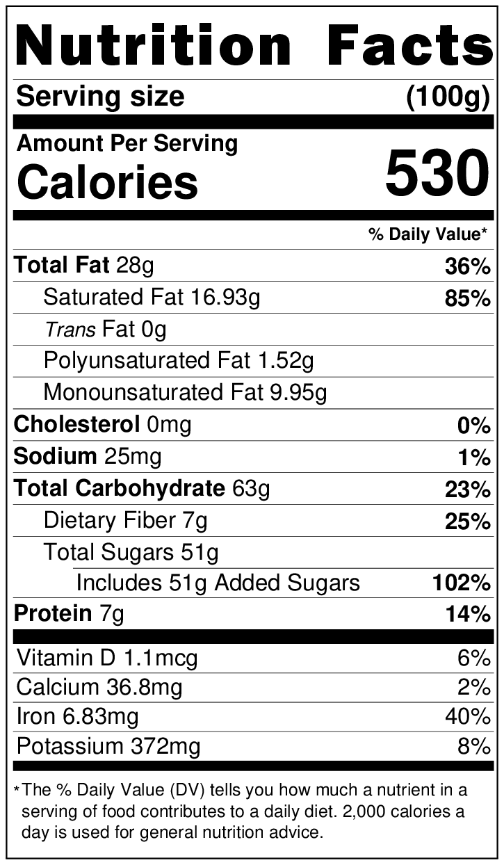 Organic Semi-Sweet Chocolate (Cane Sugar*, Chocolate Liquor*, Cocoa Butter*, Soy Lecithin*, Vanilla Extract*)