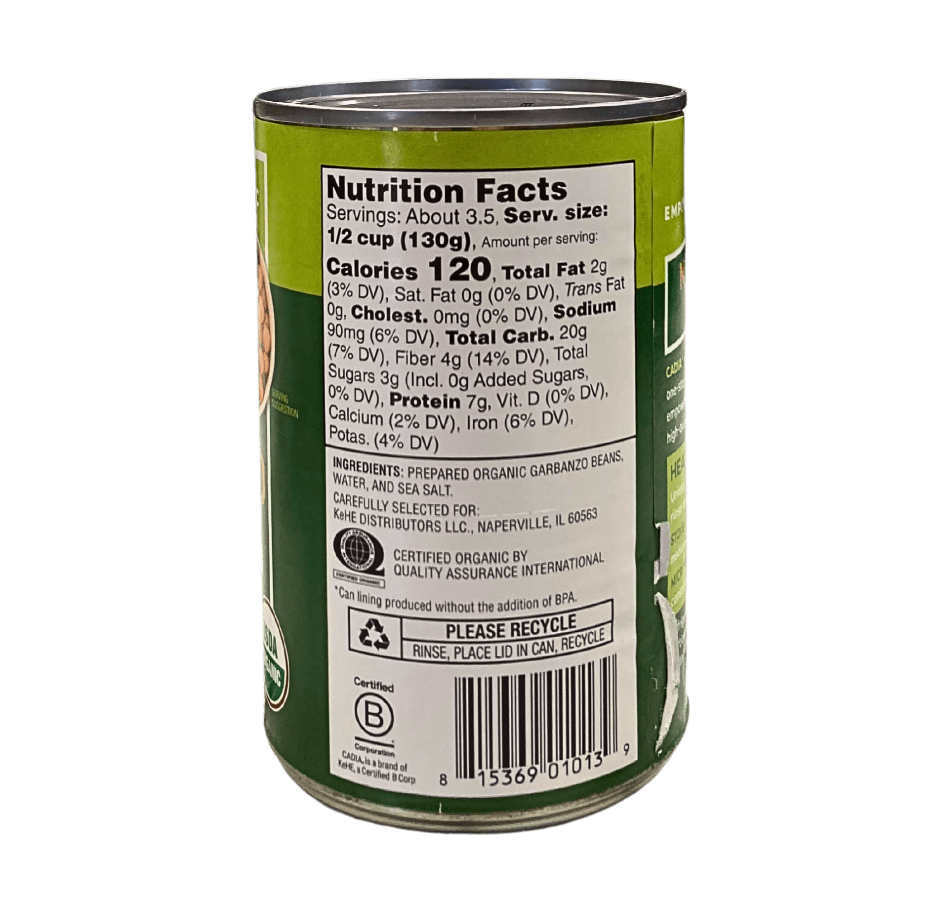 Prepared Organic Garbanzo Beans, Water, Sea Salt.