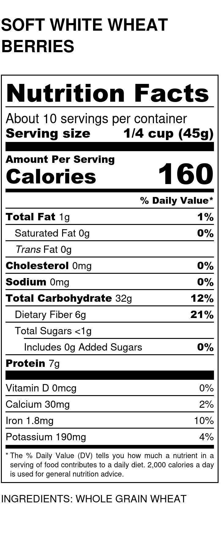 - Organic soft white wheat berries are an excellent source of complex carbohydrates, which provide sustained energy and help maintain blood sugar levels.