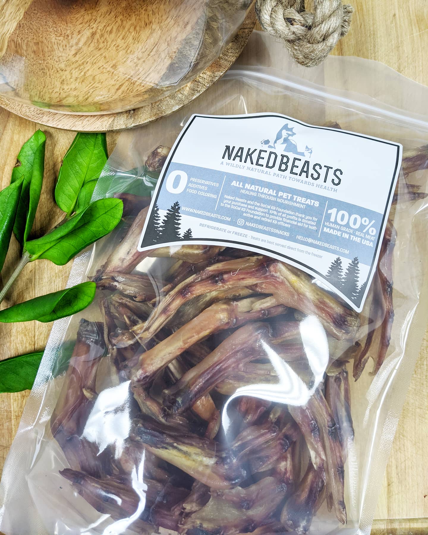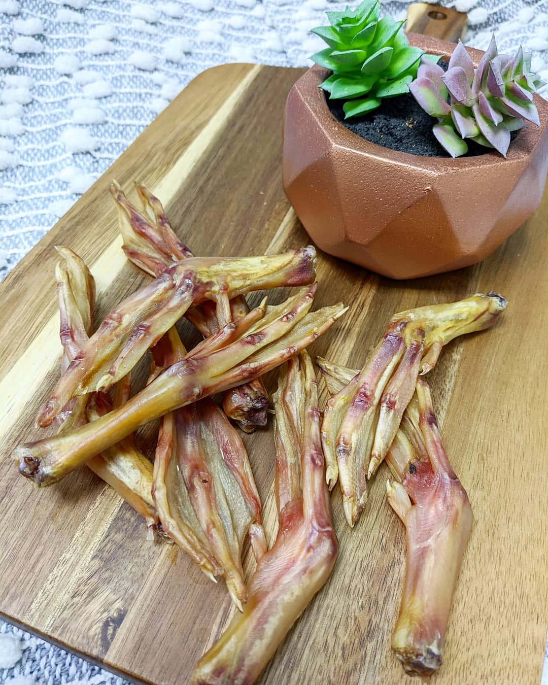 Similarly to Chicken Feet, Duck Feet is another excellent source of glucosamine, a must for any active and/or aging pet.  Both the Chicken Feet and the Duck Feet are 100% natural and effective in scrubbing off plaque build up and strengthening gums.