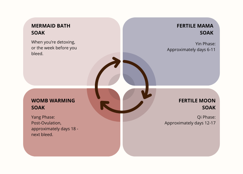 Receive 7 oz each of our four beloved therapeutic bath blends—each one aligned with a specific phase of your cycle to support your womb, your hormones, and your whole self.