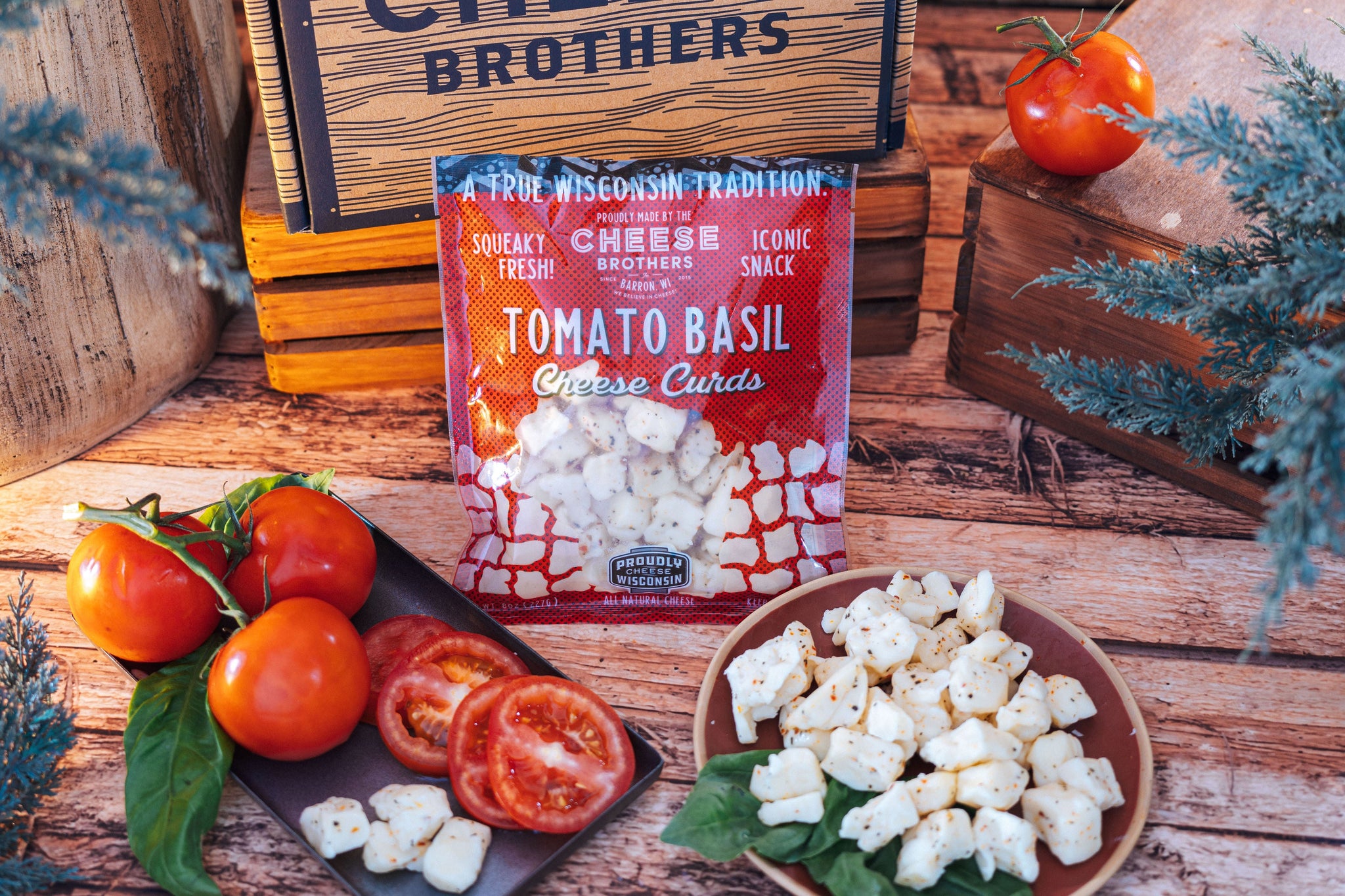 - Three 8 oz. bags of squeaky fresh Wisconsin cheese curds (2x Tomato Basil & Hot Pepper)